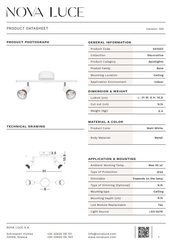 Bec inclus: LED GU10 2x5W IP20 Bulb Excluded