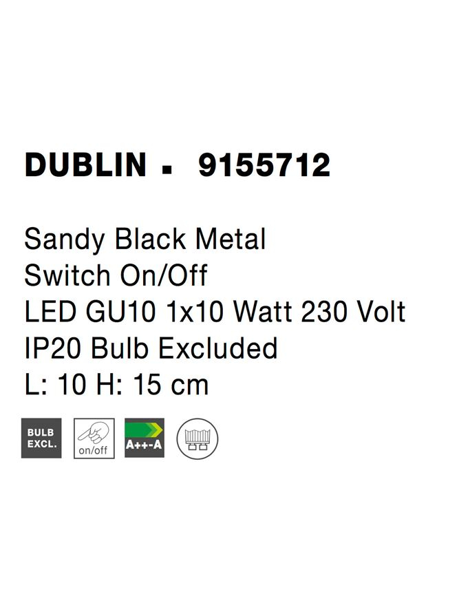 NOVA LUCE DUBLIN aplica AP1 - 9155712 - Sandy Black Metal