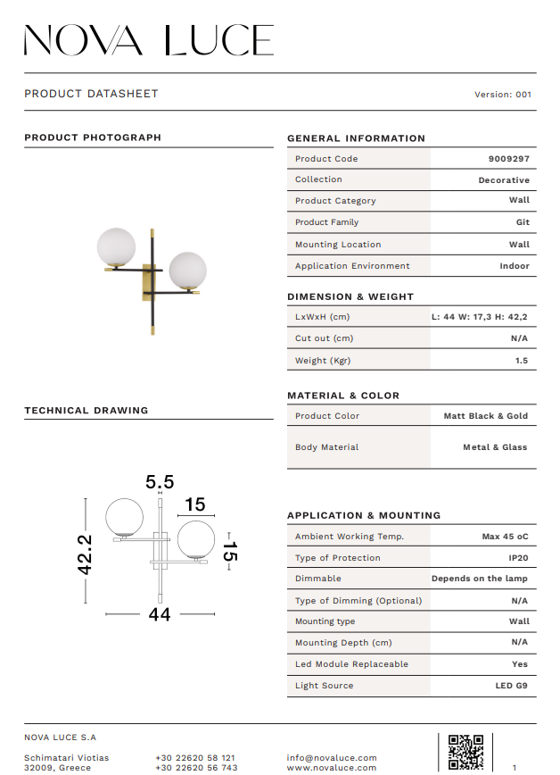 Finisaj: Matt Black & Sandy Gold metal Opal Glass
