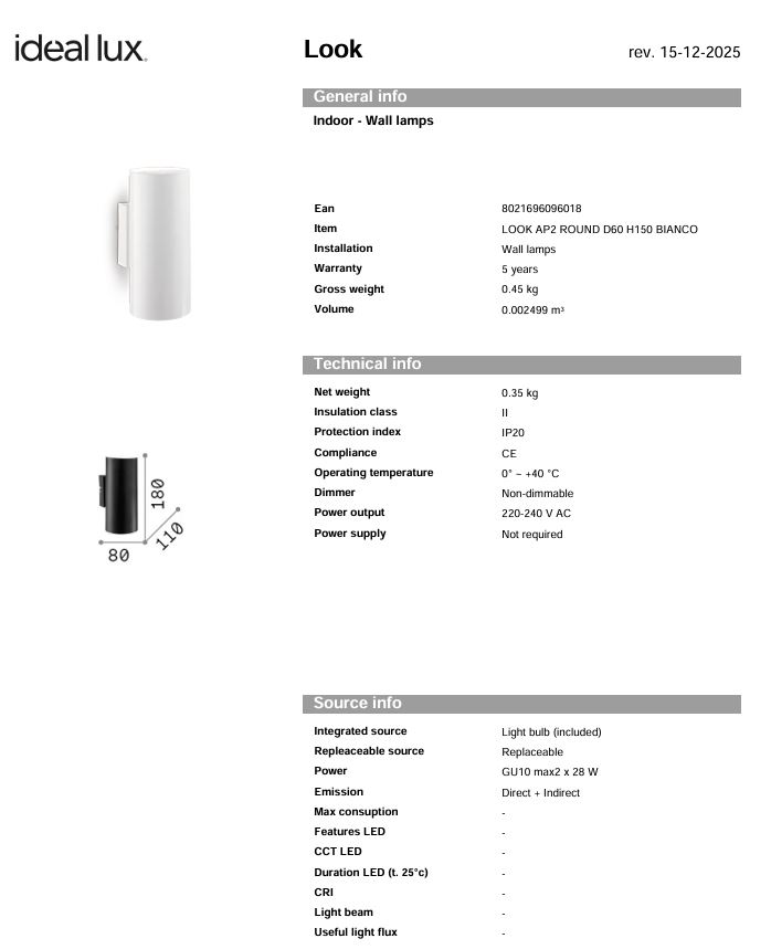 Dimensiuni: D 60 x H 150 x P 80 mm