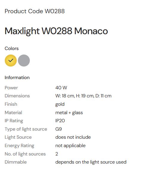 MAX LIGHT MAXLIGHT W0288 Aplice MONACO AURIU