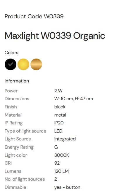 MAX LIGHT MAXLIGHT W0339 Aplice ORGANIC I negru
