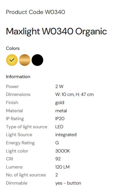 MAX LIGHT MAXLIGHT W0340 Aplice ORGANIC I AURIU LUCIOS
