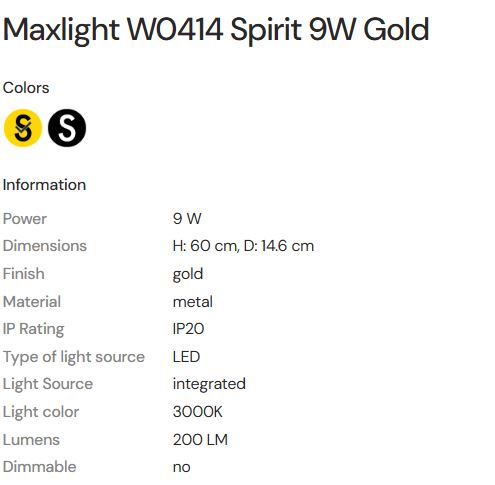 MAX LIGHT MAXLIGHT W0414 Aplice SPIRIT 9W, Auriu