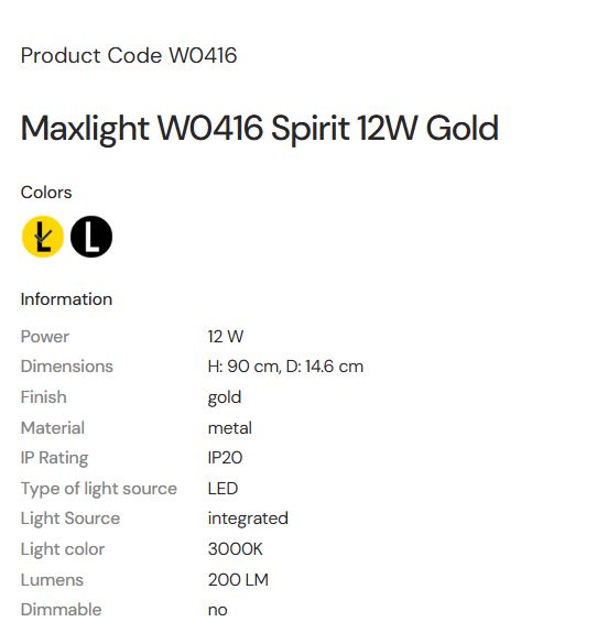 MAX LIGHT MAXLIGHT W0416 Aplice SPIRIT 12W, auriu