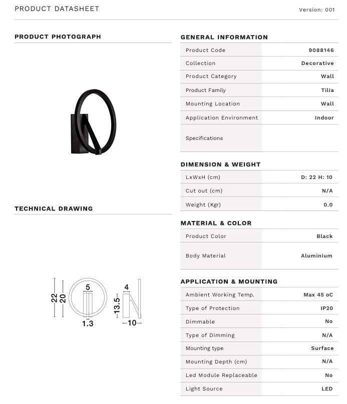 NOVA LUCE TILIA Aplica - Sandy Black Aluminium