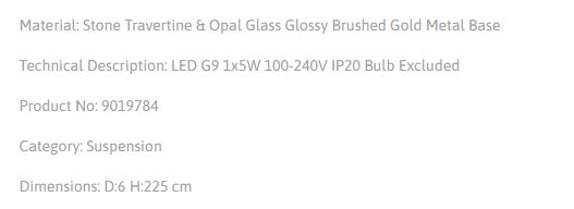 NOVA LUCE Filomena SP1 - Stone Travertine & Opal Glass Glossy Brushed Gold Metal Base - Suspensie