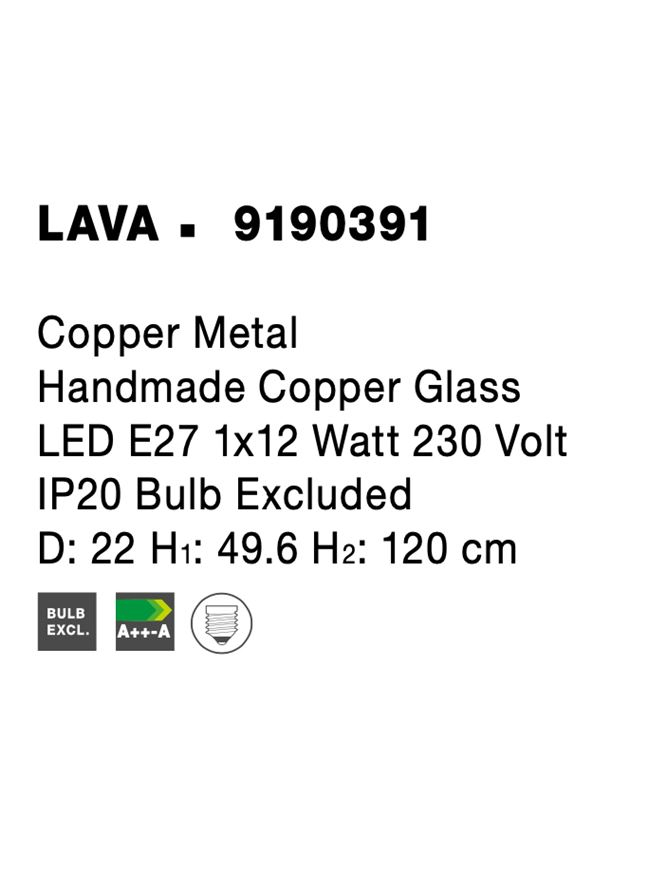 NOVA LUCE LAVA suspensie SP1 - 9190391 - Copper Metal Handmade Copper Glass