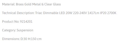 NOVA LUCE Lucien SP3 - Suspensie moderna sticla - Brass Gold Metal & Clear Glass (2700K)