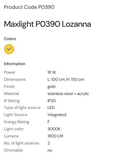 MAX LIGHT MAXLIGHT P0390 Lustra simpla LOZANNA 18W auriu