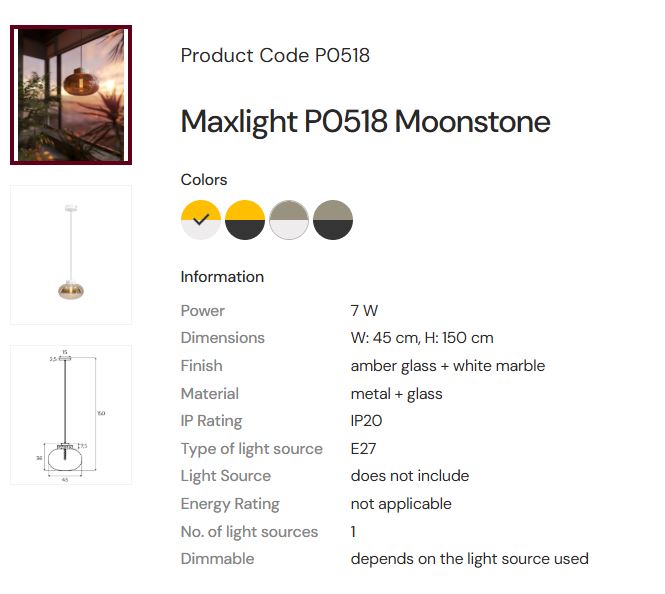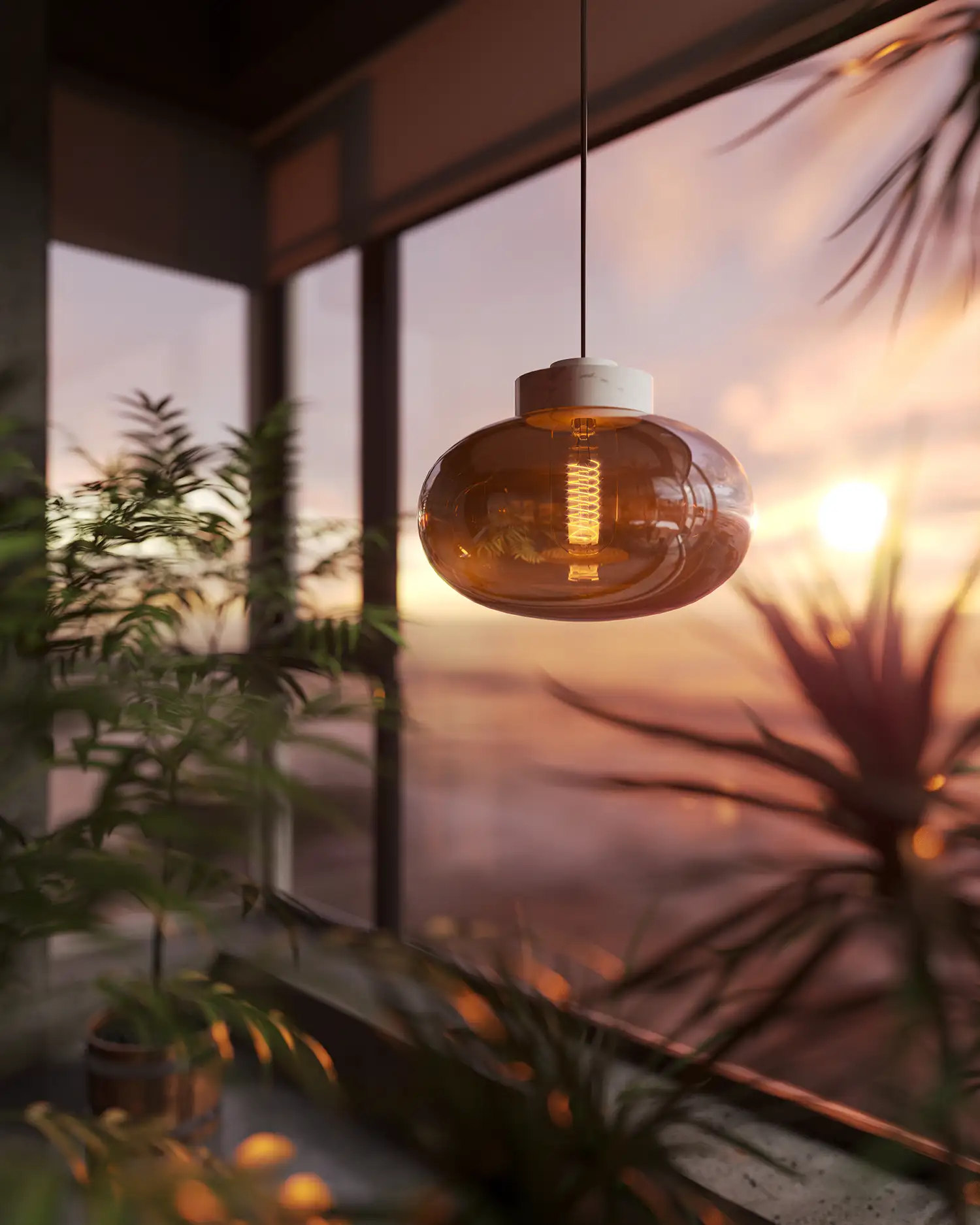 MAX LIGHT MAXLIGHT P0518 Lustre simple MOONSTONE AMBER GLASS+WHITE MARBLE