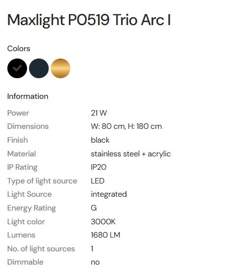 MAX LIGHT MAXLIGHT P0519 Lustre simple TRIO ARC I MATT BLACK
