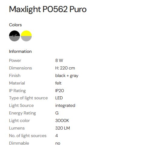 MAX LIGHT MAXLIGHT P0562 SUSPENSIE PURO BLACK&GREY