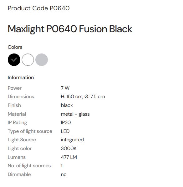 MAX LIGHT MAXLIGHT P0640 Lustre simple FUSION NEGRU