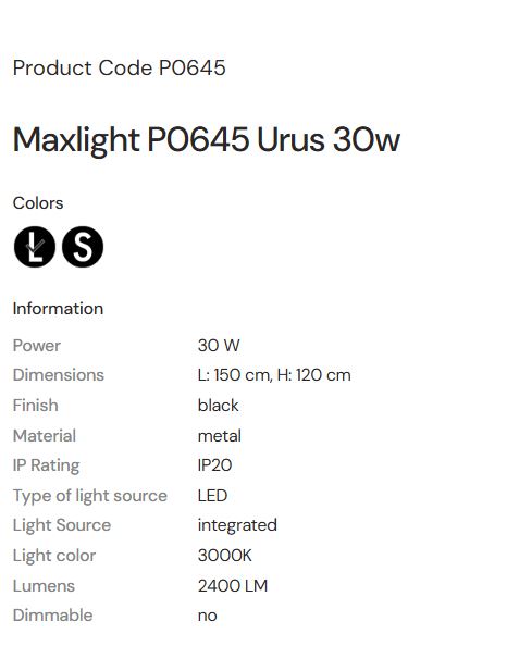 MAX LIGHT MAXLIGHT P0645 Lustre simple URUS 30W