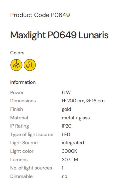 MAX LIGHT MAXLIGHT P0649 Lustre simple LUNARIS 6W
