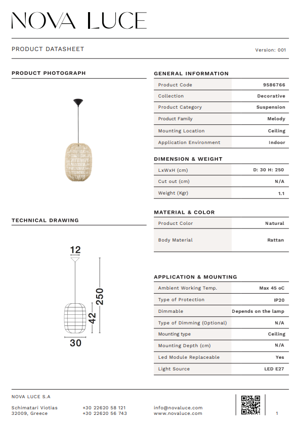 Dimensiuni: D: 30 H1: 42 H2: 250 cm
