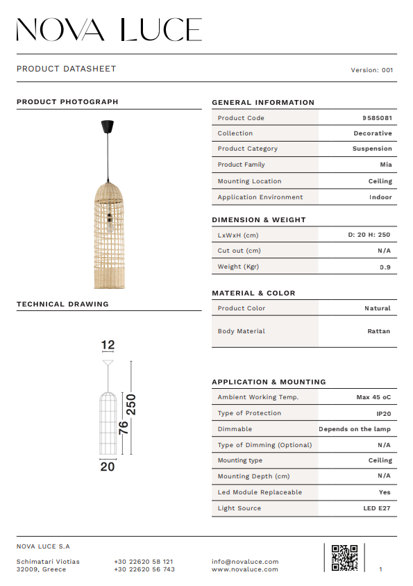 Dimensiuni: D: 20 H1: 76 H2: 250 cm