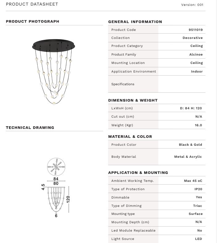 Finisaj: Matt Black & Gold Aluminium & Acrylic
