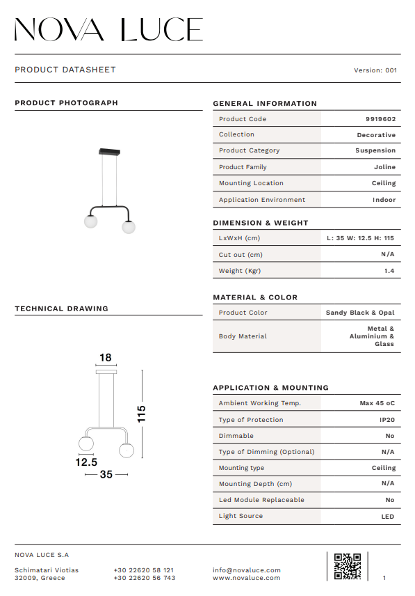 Material corp: Sandy Black Metal & Aluminium White Opal Glass