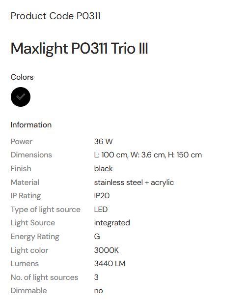 MAX LIGHT MAXLIGHT P0311 Lustre simple TRIO 3 NEGRU