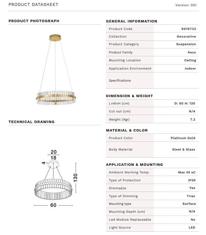 NOVA LUCE Kezo diam 60 - suspensie 4402 lm - 3500K