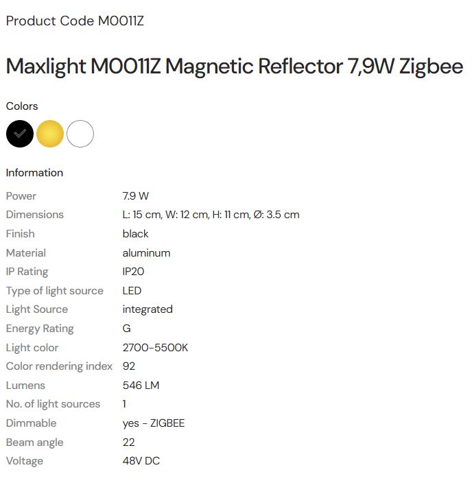 MAX LIGHT Maxlight M0011Z Magnetic Reflector 7,9W Zigbee Colors 2700/5000K