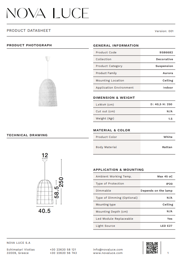 Dimensiuni: D: 40.5 H1: 58.5 H2: 250 cm