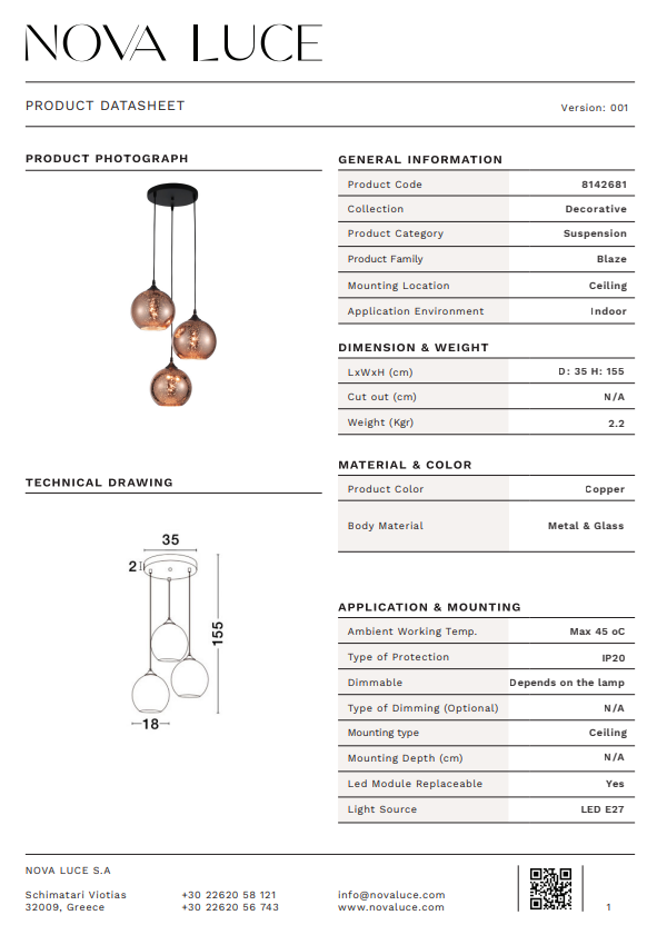 Material corp: Copper Glass Black Metal