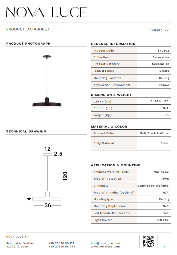 Bec inclus: LED E27 1x12W IP20 Bulb Excluded