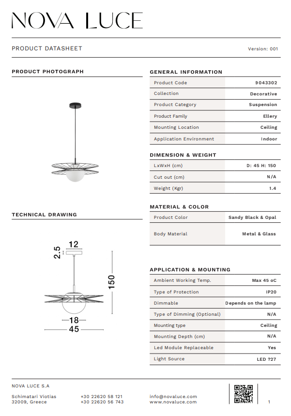 Bec inclus: LED E27 1x12W 230V IP20 Bulb Excluded Adjustable Height