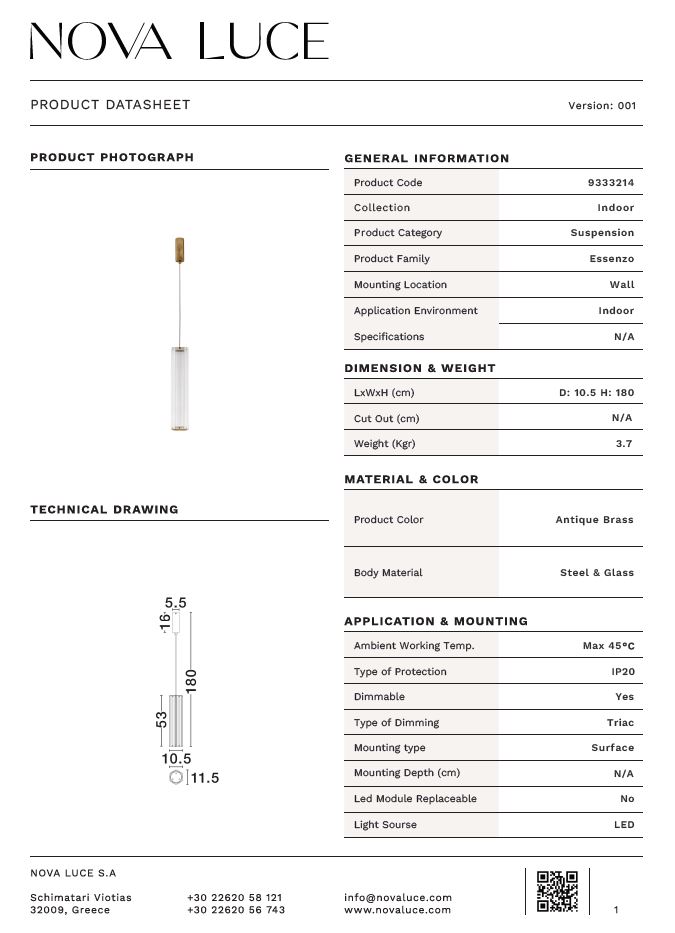 NOVA LUCE ESSENZO SP1 12W - SUSPENSIE MODERNA LED