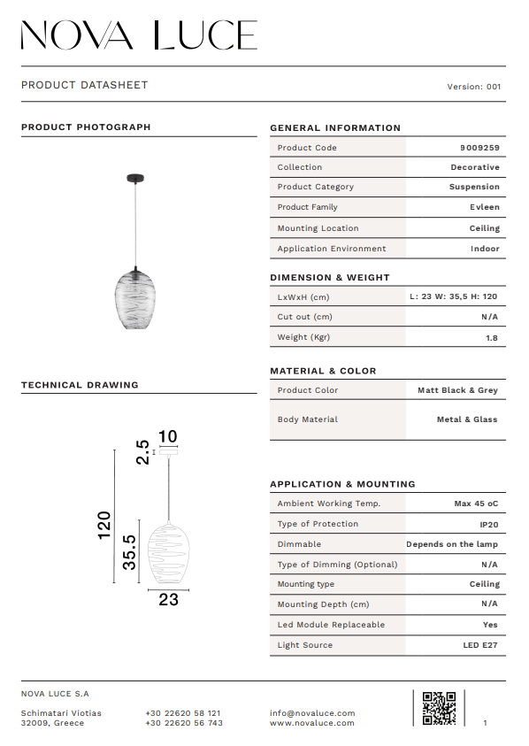 Dimensiuni: D:23 H1: 35.5 H2: 120 cm
