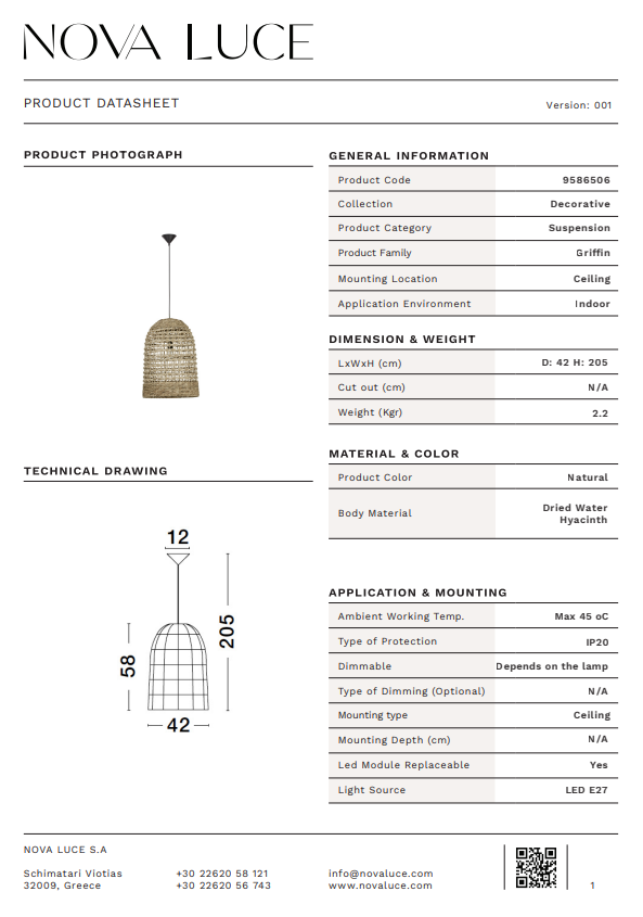 Dimensiuni: D: 42 H1: 58 H2: 205 cm