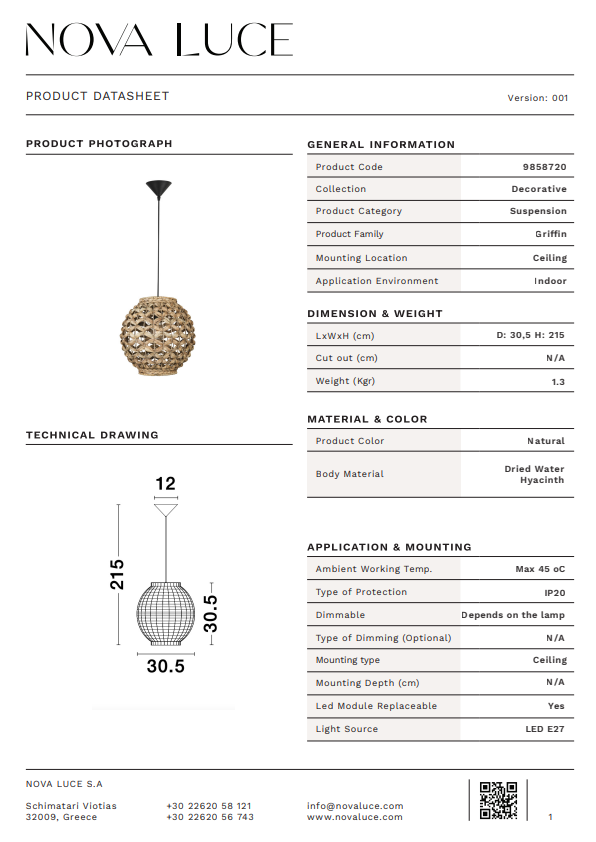 Material corp: Dried Water Hyacinth Black Fabric Wire & Base