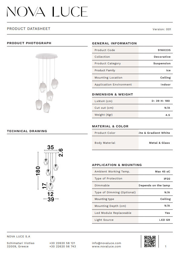 NOVA LUCE ICE suspensie SP5 - 9160235 - Gradient White Colour Glass & White Metal