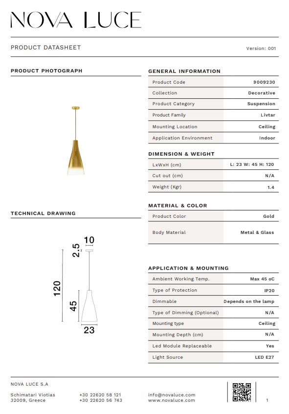 Dimensiuni: D:23 H1: 45 H2: 120 cm