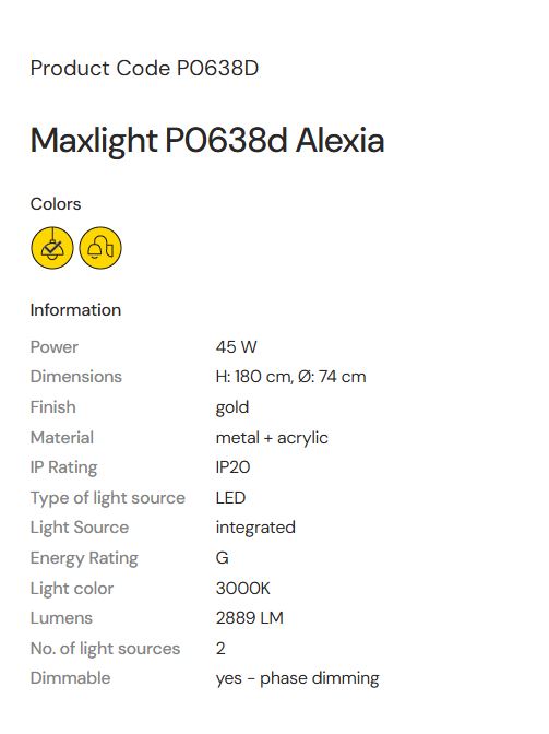 MAX LIGHT MAXLIGHT P0638D Lustre simple ALEXIA 45W