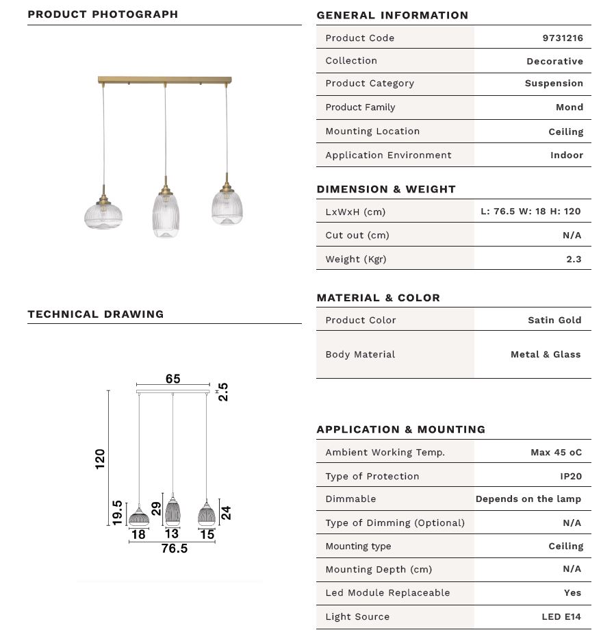 Bec inclus: LED E14 3x5W 230V IP20 Bulb Excluded Adjustable Height