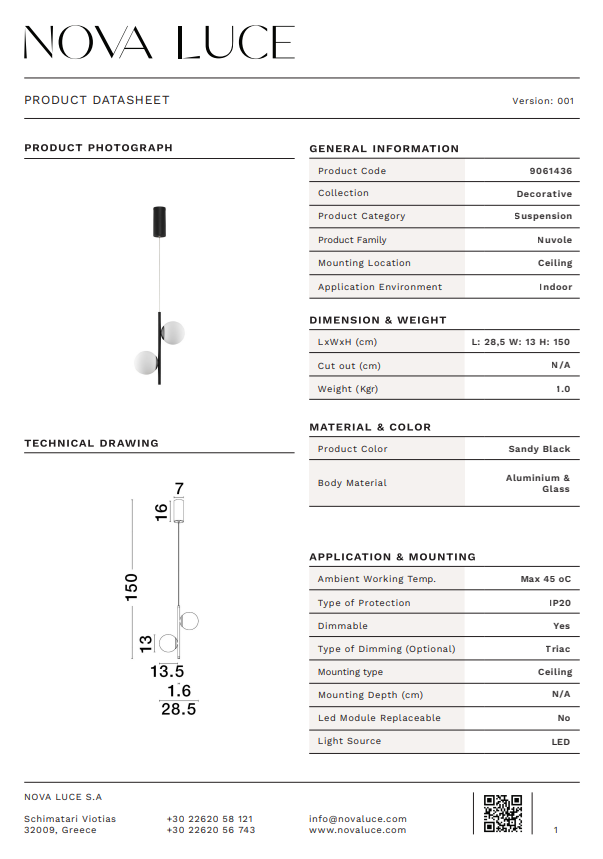 Finisaj: Sandy Black Aluminium & Opal Glass