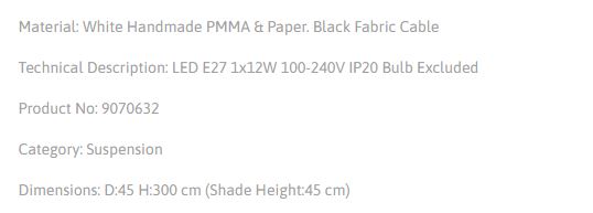 NOVA LUCE PASHIO SP45X45 - White Handmade PMMA & Paper. Black Fabric Cable - SUSPENSIE