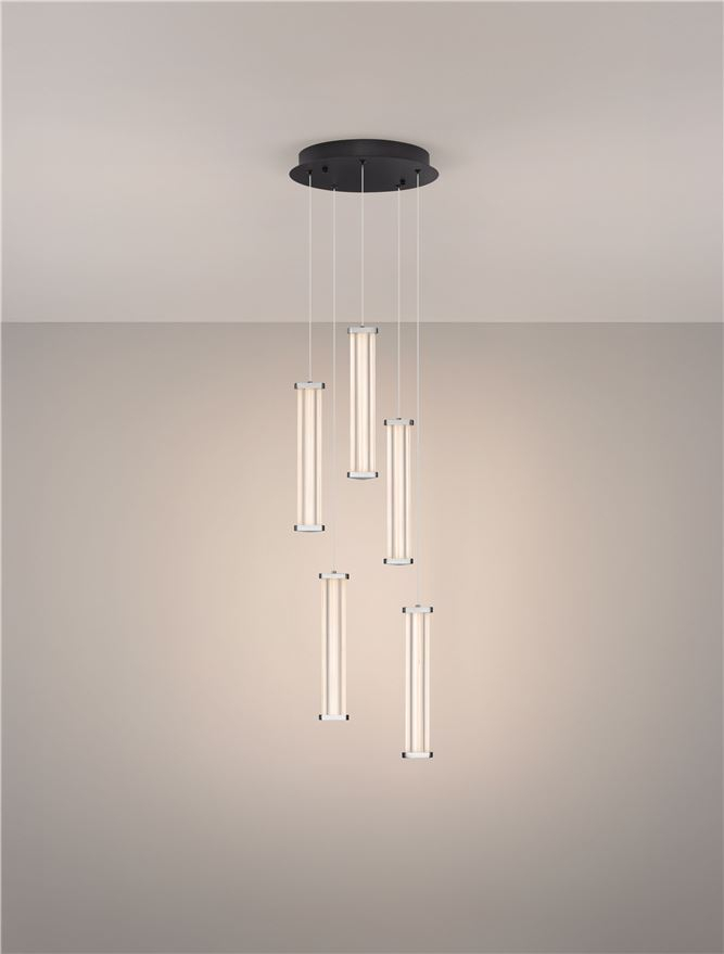 NOVA LUCE PHEME SP5 - Matt Black Metal Base, Satin Nickel & Clear Acrylic