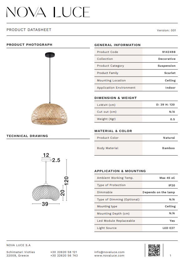 Material corp: Natural Bamboo Black PVC Wire & Base