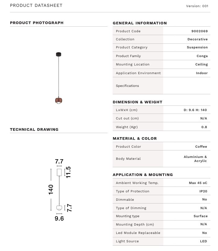NOVA LUCE Suspensie Conga Coffee 13W