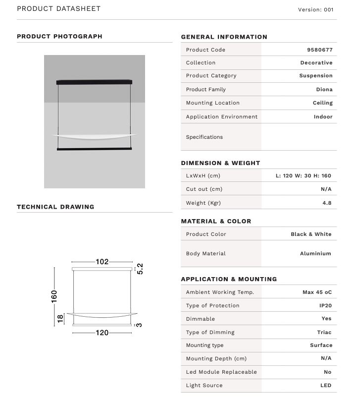 NOVA LUCE Diona 120x30 cm - LED 81 Watt - 3000K