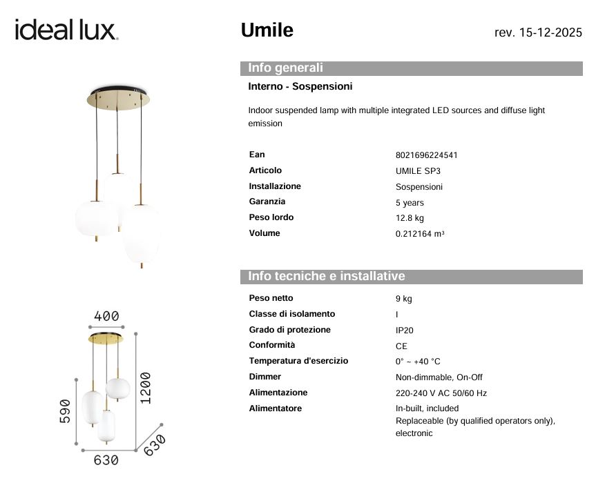 Bec inclus: LED 50 W, inclus, 3000K, 3160 lumeni, 20.000h