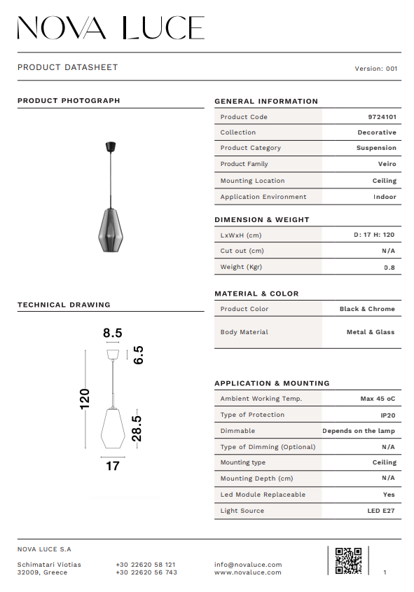 Finisaj: Chrome Glass Black Metal Black Fabric Wire