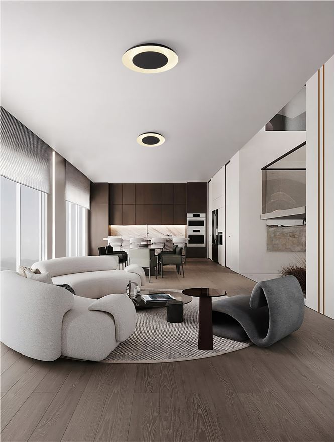 NOVA LUCE EPOS PLAFONIEA PL60 - Triac Dimmable Sandy Black & White Metal & Polycarbonate