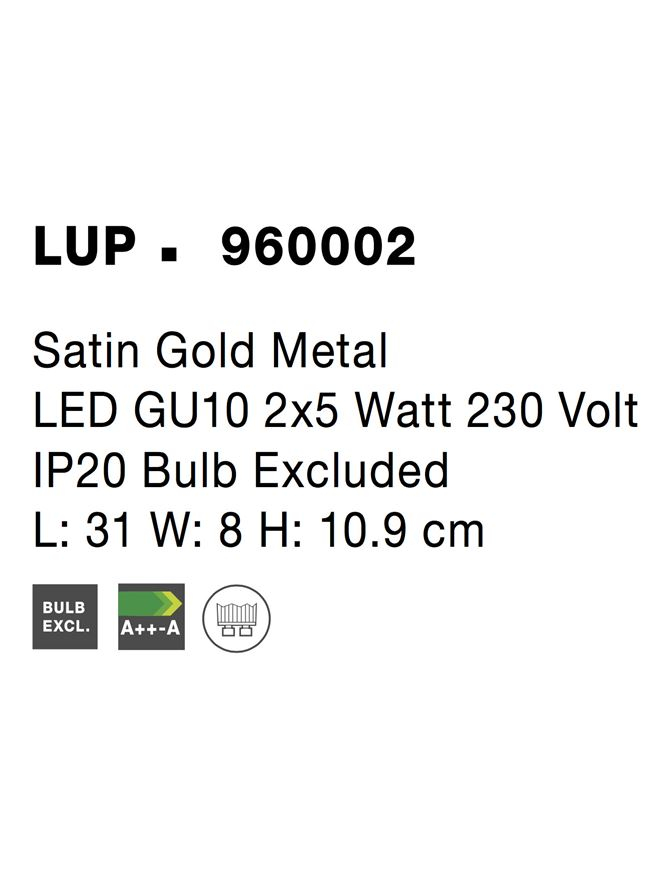 Bec inclus: lED GU10 2x5W IP20 Bulb Excluded