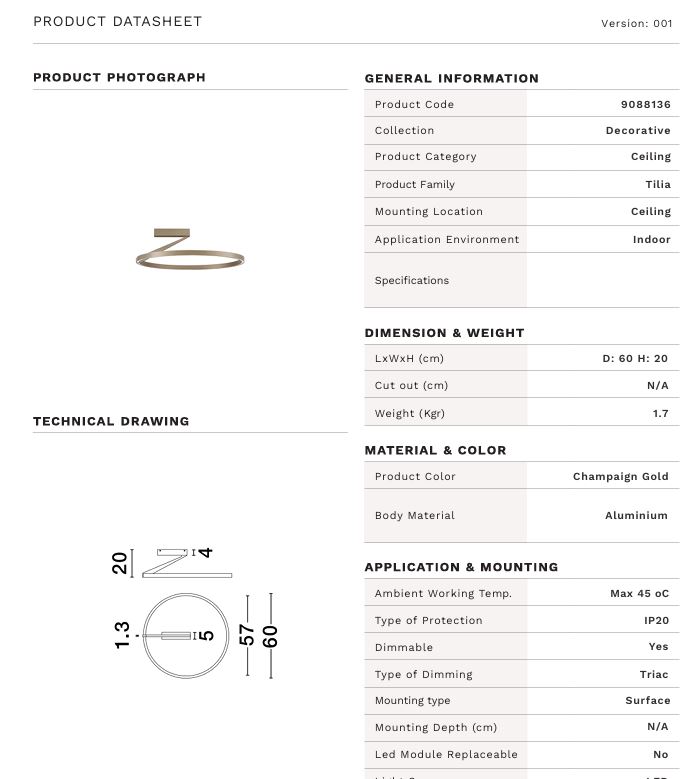 NOVA LUCE TILIA plafoniera - Triac Dimmable Moca Coffee Aluminium